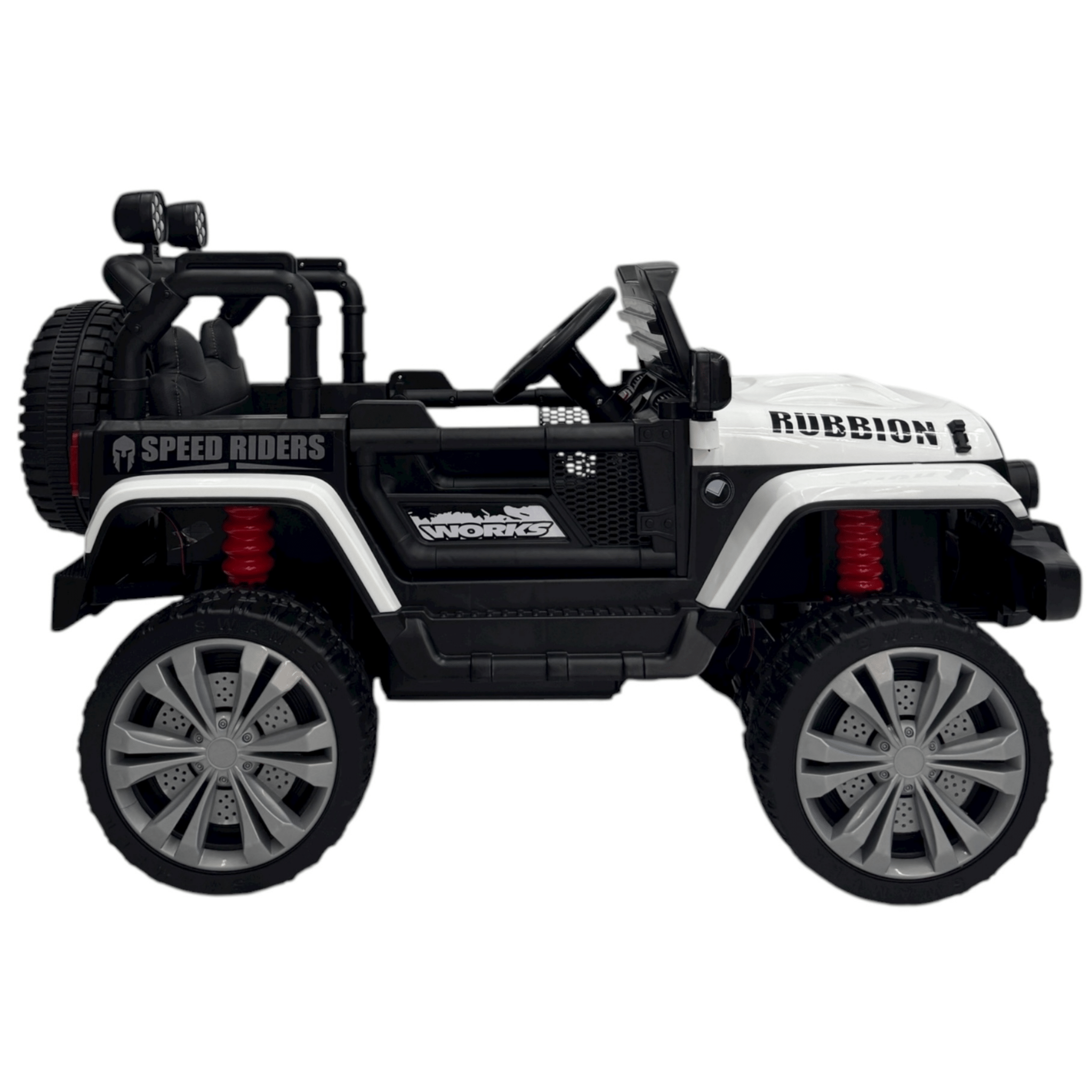 El Jeep Eléctrico Rubicun 4x4 para Niños es un modelo de alto desempeño que combina fuerza, diseño y tecnología. Con su tracción en las cuatro ruedas, luces LED de alto brillo y carrocería tipo todoterreno, brinda una experiencia de conducción divertida, segura y llena de estilo para los pequeños aventureros.