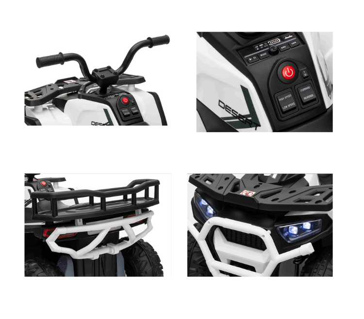 La Mini cuatrimoto eléctrica 12V ofrece a los niños una experiencia de conducción realista, segura y llena de diversión. Su diseño robusto tipo todoterreno, faros delanteros LED y acabados deportivos la convierten en el vehículo ideal para los pequeños aventureros que aman la exploración.